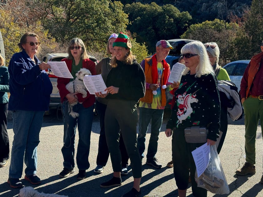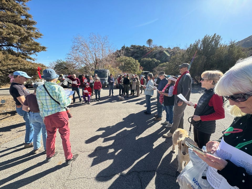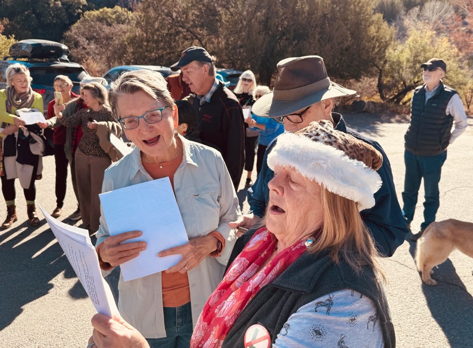 I was another beautiful December day, as a very large crowd assembled to sing a medley of Christmas Carols in front of the PortalPost Office