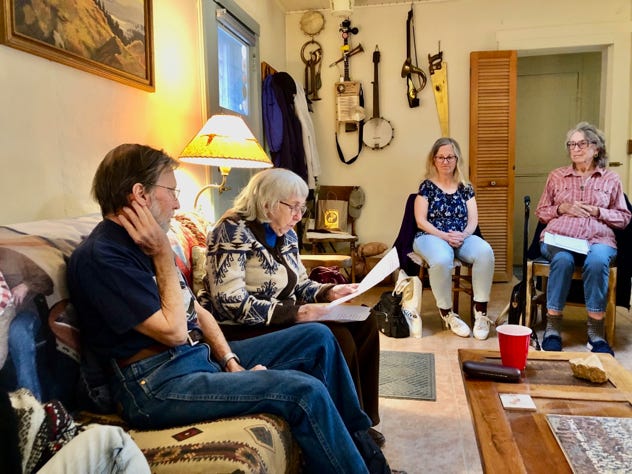 Our local writer’s group has emerged from our Covid isolation and will be meeting twice a month. We had our first meeting with the long time members, who are still able, reading their writings of recent months as well as some old writings from years past. Some new neighbors have also joined the group, so if you like to write, be it fiction, personal journals or poetry, join us and become one of our group. We support each other with guidance, advice and maybe a little constructive criticism.