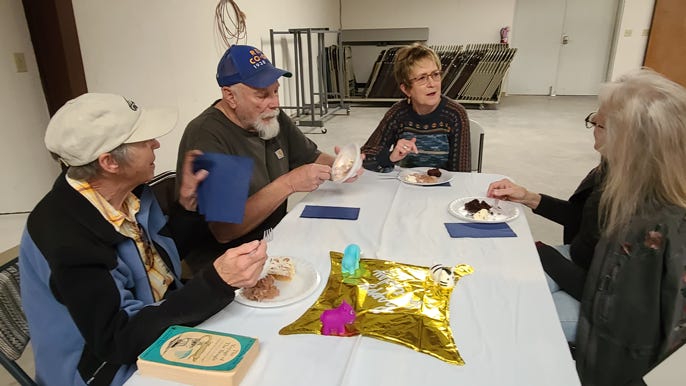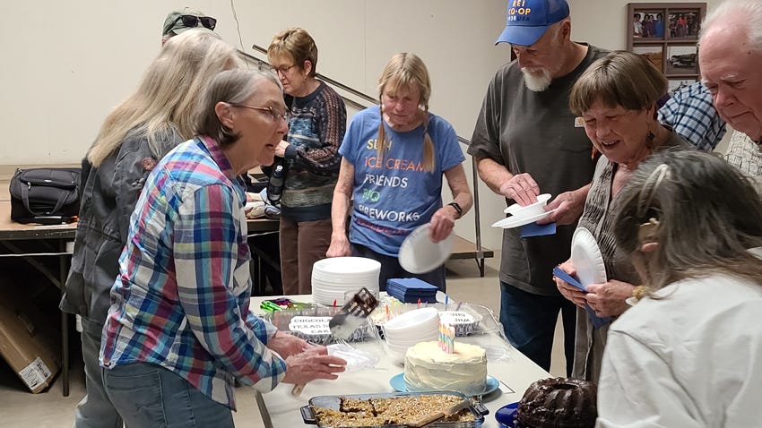 Thanks to everyone who helped make the party a success: the staff of the Rodeo Community Center, the people who baked 4 cakes, and everyone who helped set up and clean up. And special thanks to Deborah Herczog, the co-coordinator of the event.