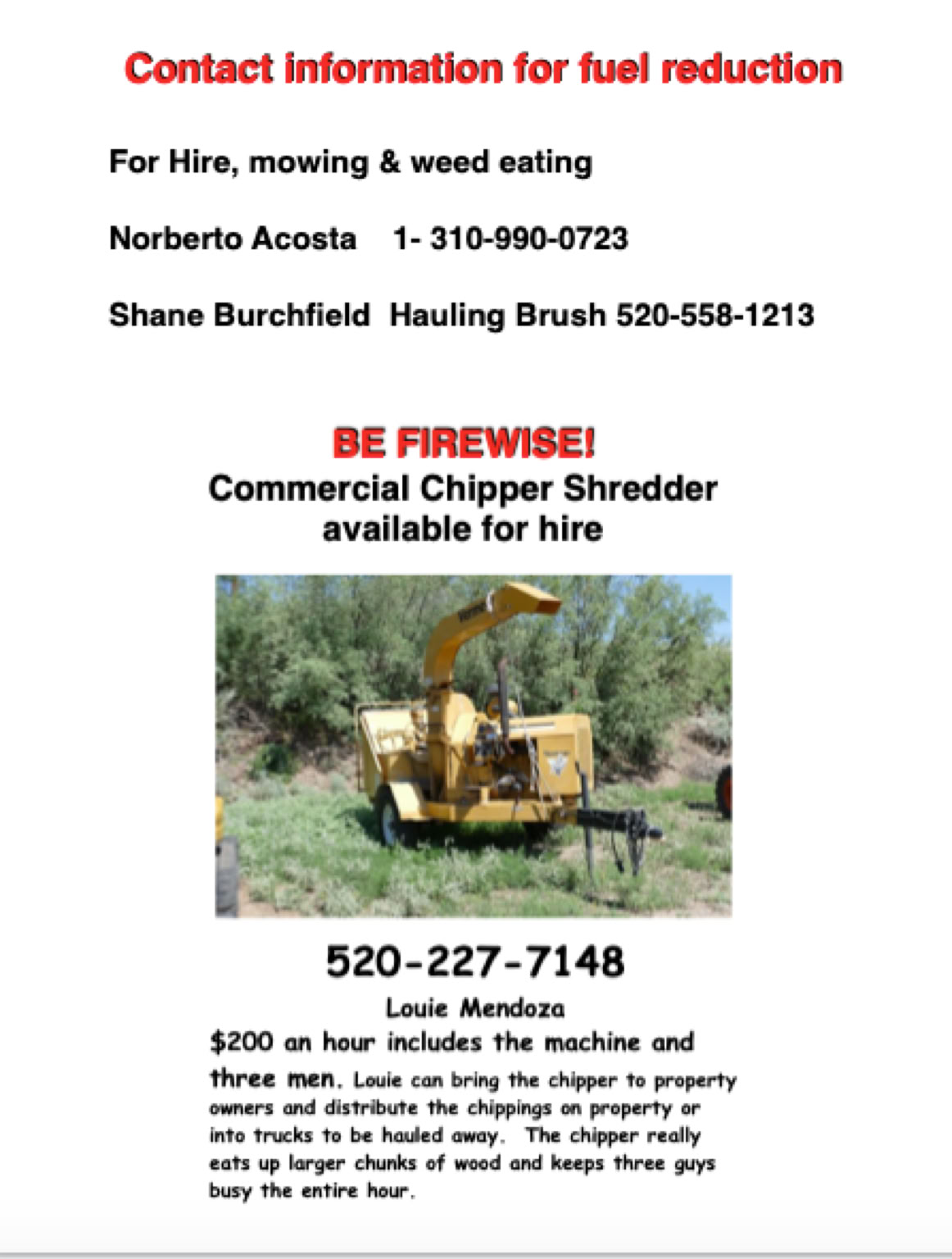 • If we work together toward Community Firewise status, the US Forest Service, BLM, and AZ State lands will pitch in and do their part on government lands adjacent to our private properties.