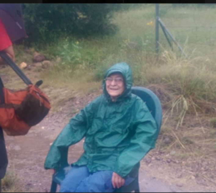 ‍At about 6:30 am on Thursday (September 18), two Border Patrol agents, a representative from the Sherriff’s office and Walter Schoepfle transported Gloria from her house to mine. The creek was up against the very edge of her porch, but no water entered the house. The Sheriff snapped this photo and sent it off to NBC news. By the time it was aired, the story said that Howard Topoff had rescued not just Gloria but two women, water up to their knees, and the house heading down stream. We are still looking for the second woman, who may have been relocated under the Witness Protection Program.