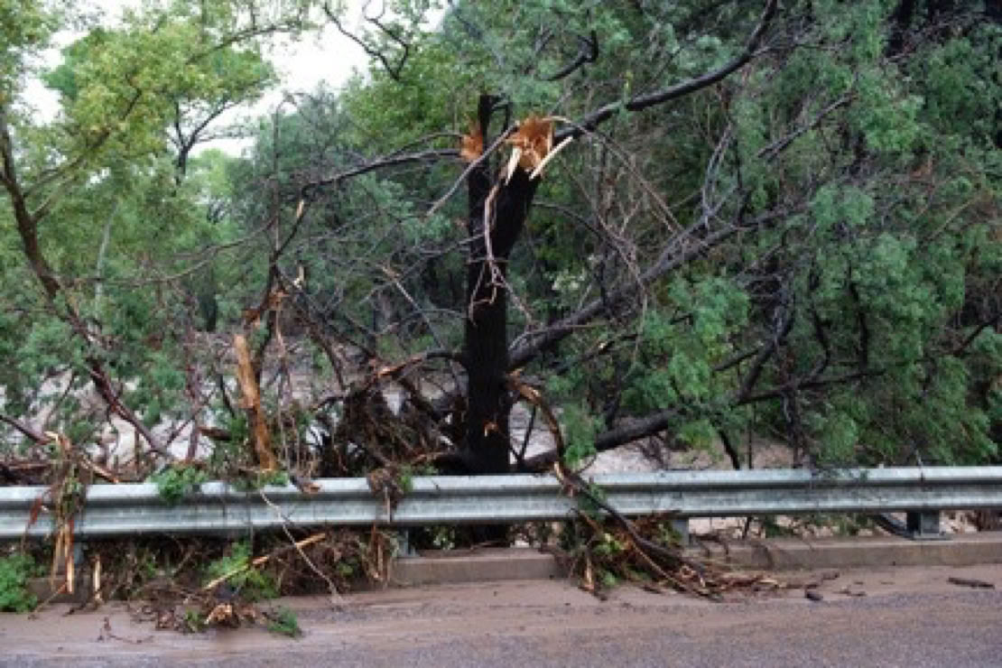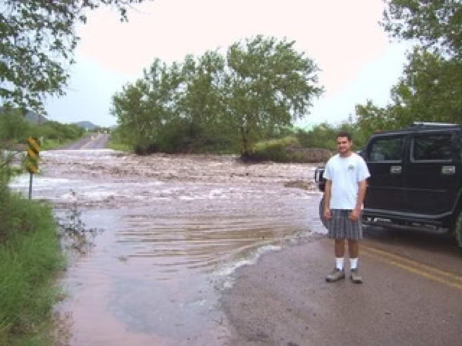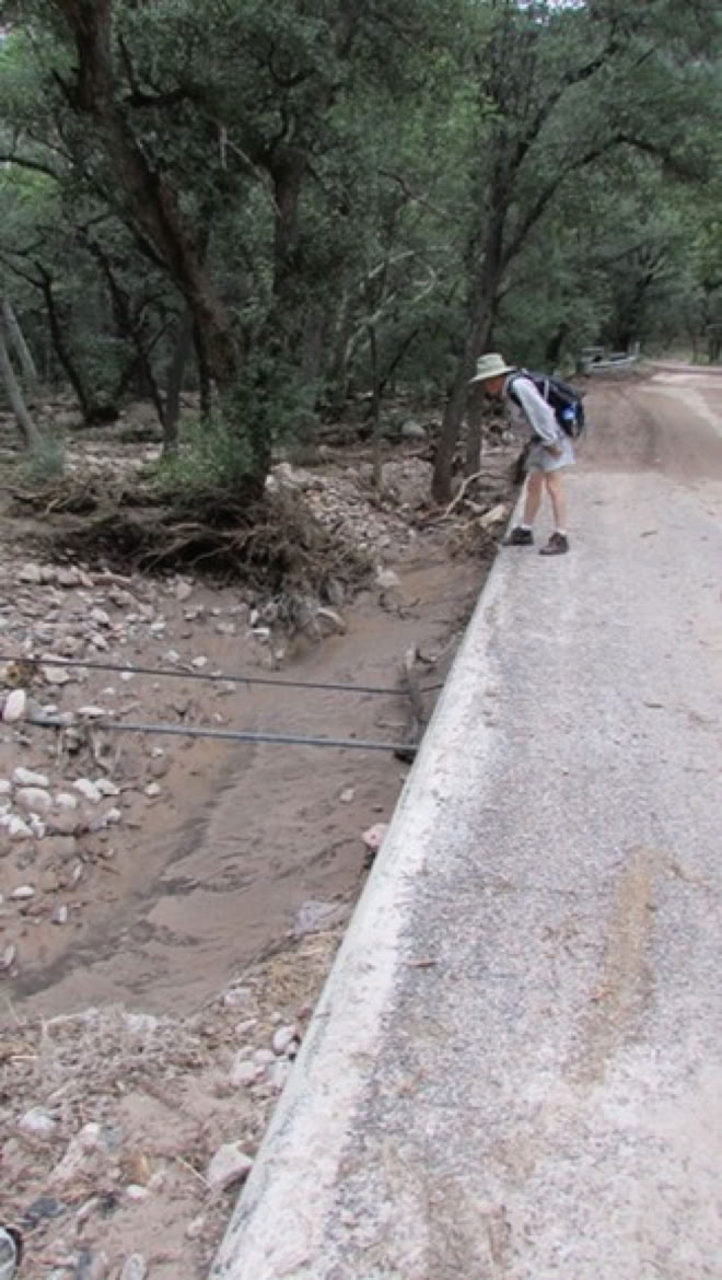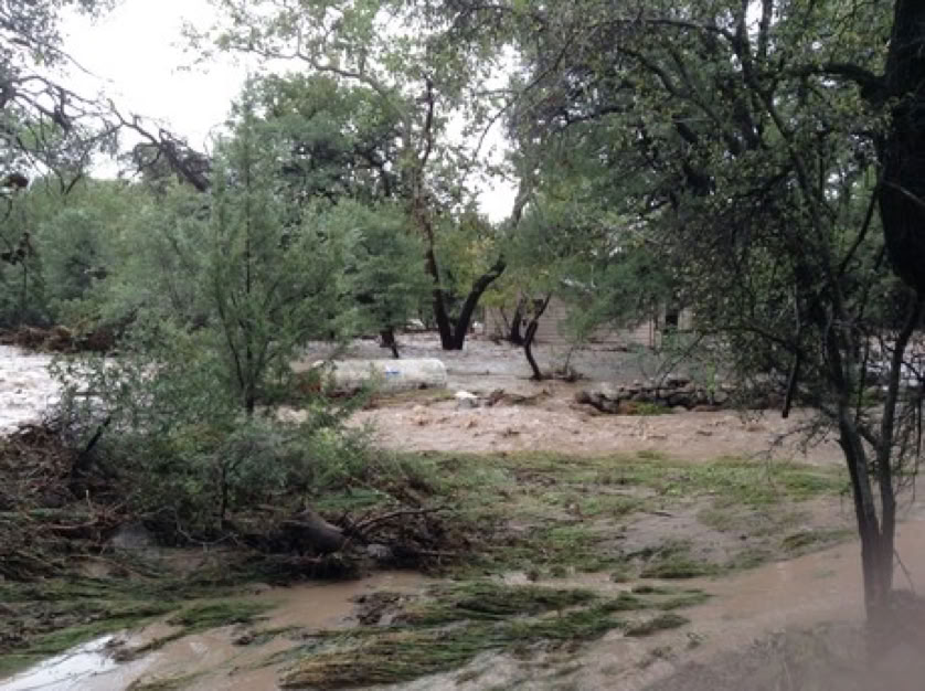 ‍The Forest Service is calling it the 500-Year Flood. Others are comparing it to Katrina, Johnstown Pennsylvania, and Noah. Whatever - we had water where no one living here today remembers water! New creeks popped up everywhere. On September 17, twostorms fromBaja created a deluge the likes of which we have never seen. Fortunately, as far as I know, only the creek-side cottages of Cave Creek Ranch had serious indoor flooding. There are reports that some of the straw bales in Morgan & Johns’s new house were wet. This page will begin to tell the story in pictures, stories and even song (if someone sends me a song). But, as they say, you had to be here to believe it!