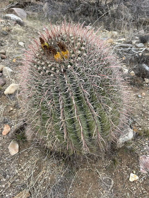 It was a lovely winter day with mostly bare vegetation but a few hints of life such as the barrel cactus seen below.