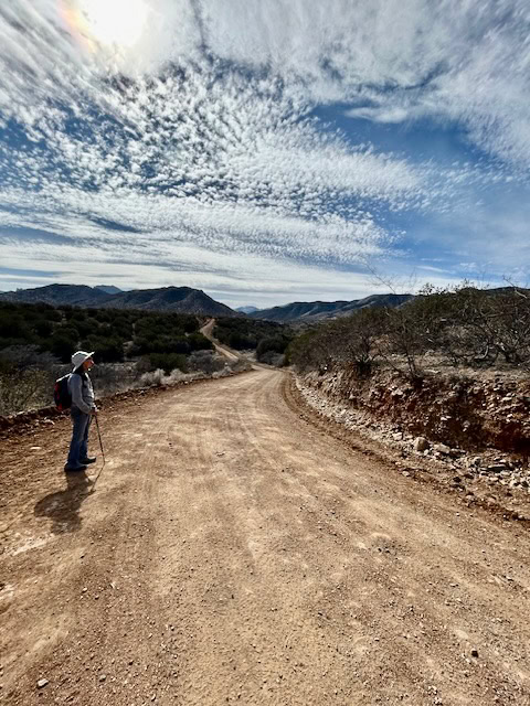 Thirteen hikers drove to where the Foothills Road meets the East Turkey Creek Wash and began the always very slightly uphill walk to where the wash meets the road into Paradise, almost 3 1/2 miles later.