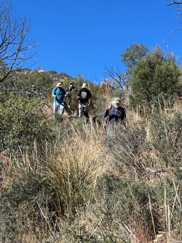 Six hikers met in Portal and drove to Paradise, headed for the Chiricahua Mine.