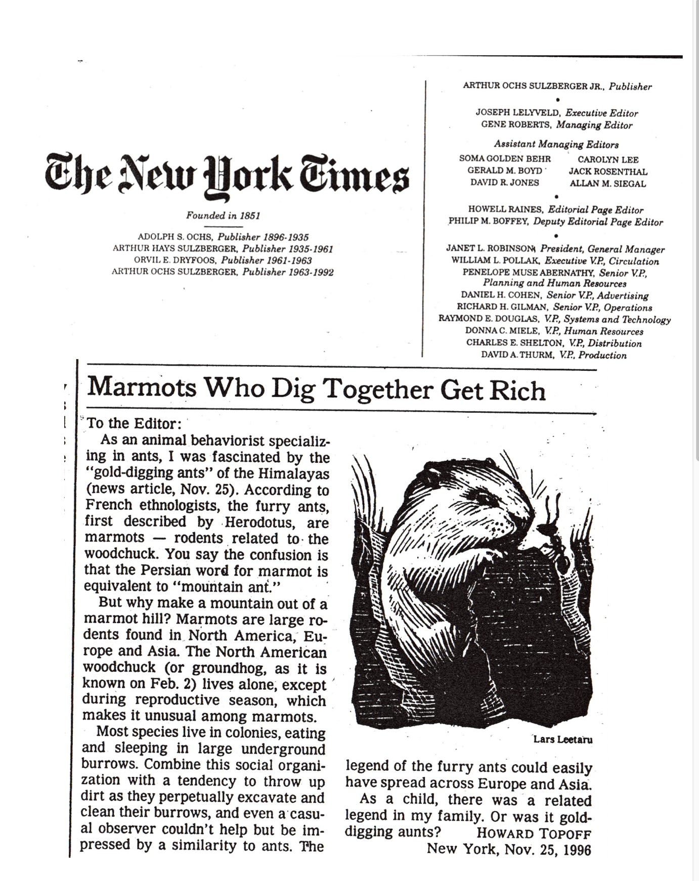 In fact, Mr. Topoff takes offense at the image of army ants as “warlike, aggressive animals.” “When army ants form into their long columns,” Mr. Topoff said,