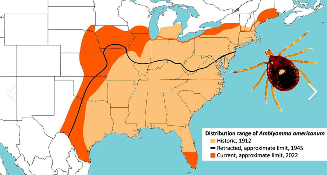 Let’s start with one species that is getting a lot of press lately, even if it is not typically (YET) present in Arizona: the Lone Star Tick. The bite causes a meat allergy. The tick introduces a sugar molecule called alpha-gal into your bloodstream. Your immune system responds. The next time you eat red meat, your body reacts. Beef, pork, lamb, and venison are the main triggers. Sensitivity varies a lot, which is part of why it’s so hard to diagnose. Some people regain tolerance if they avoid further tick bites. Others don’t recover. No treatment exists beyond avoidance. You can see from the distribution map it is spreading. There are now a few sporadic cases recently reported in New Mexico (and even a few SUSPECTED cases in Arizona).