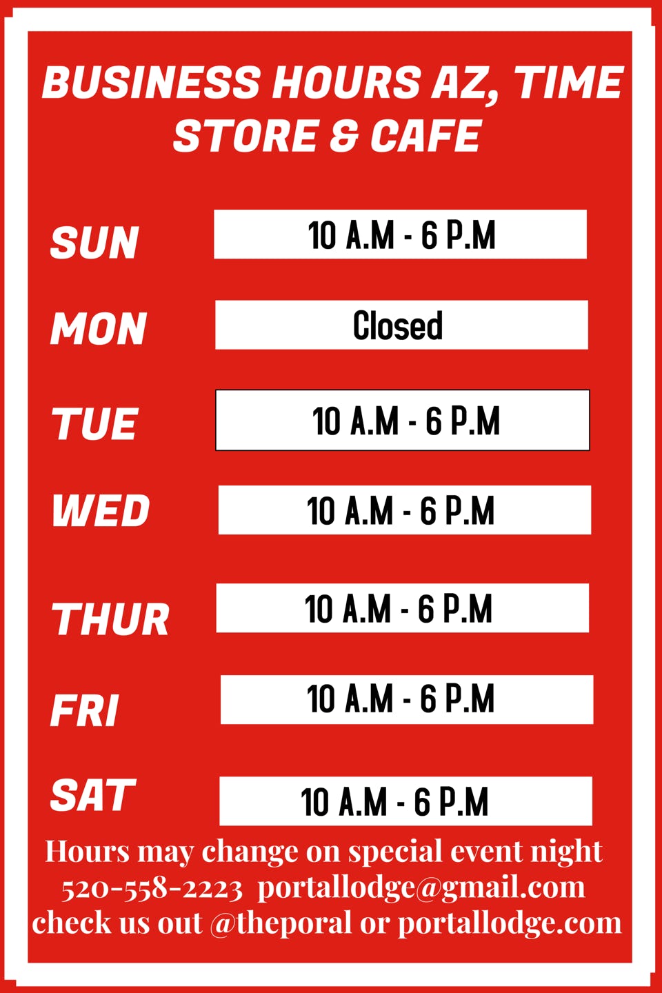 Monday - Friday 8:30 to 12:30 Mail truck leaves at 12:00 to get back to San Simon in time for the Tucson truck.