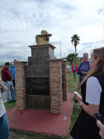 On a lovely Saturday (October 22), 30 people from Portal and Rodeo embarked on an “expedition” to Agua Prieta. Arranged by Howard Topoff and his teaching colleagues at the Center For Academic Success school in Douglas, we had a delicious lunch at La Abeja. We were able to commandeer the entire restaurant! After lunch, we piled into a bunch of vehicles for a tour of the city, led by Oscar, the official Agua Prieta Historian.