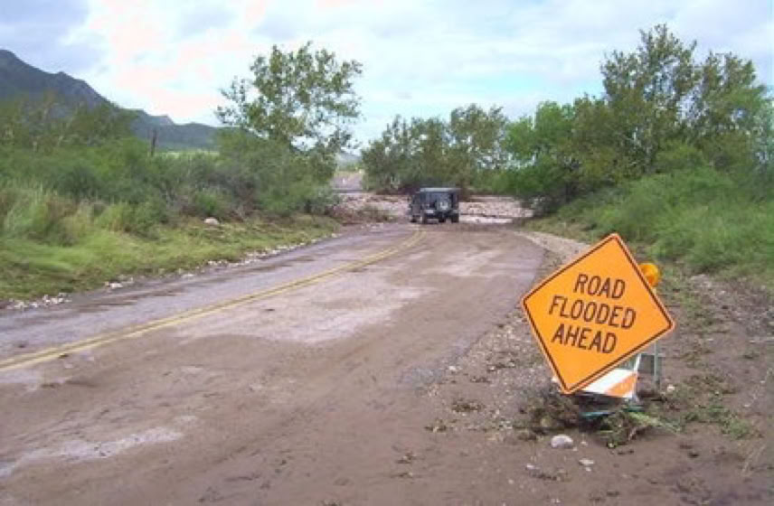 Sulphur Canyon Road With Water From Horseshoe Creek Entirely Covering The Road From Willow Tank To State Line Road (Jonathan Patt)