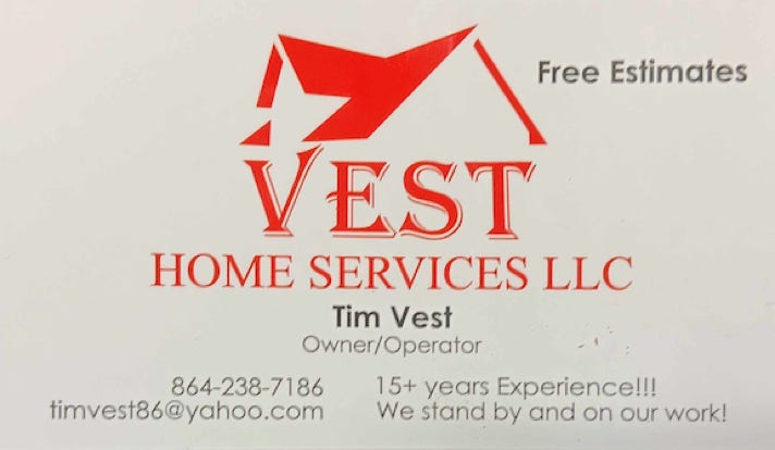 Tim Vest. - (864) 238 7186