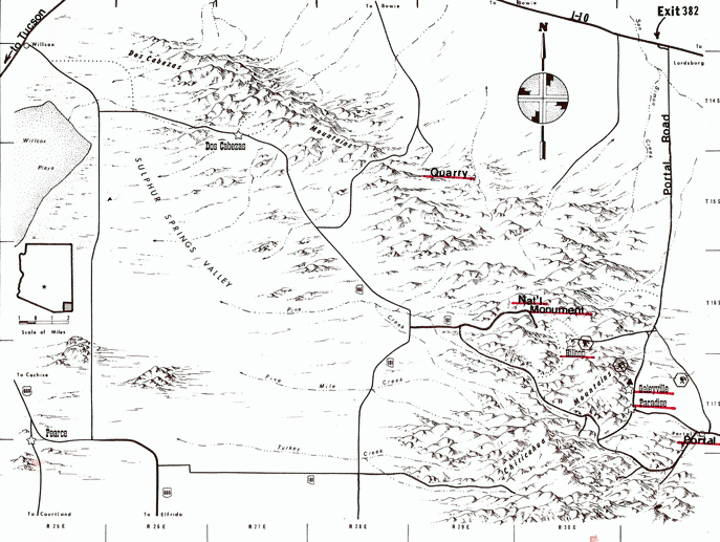 The northern end of the Chiricahuas about three miles southeast of old Fort Bowie once had a marble quarry. Denver capitalists formed the Arizona Marble Colorado in 1909 with a reported capital of about S250,OOO and John G. Kerr as manager. They set about developing some eleven claims and installed a highly mechanized operation. The marble itself was described as "white, with pronounced dark veinings and a predominating flesh tint". Active work apparently began in the summer of 1910.