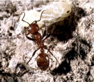 LaMon, B. and Topoff, H. 1985. Social facilitation of eclosion in the fire ant Solenopsis invicta. Developmental Psychobiology 18:367-374.