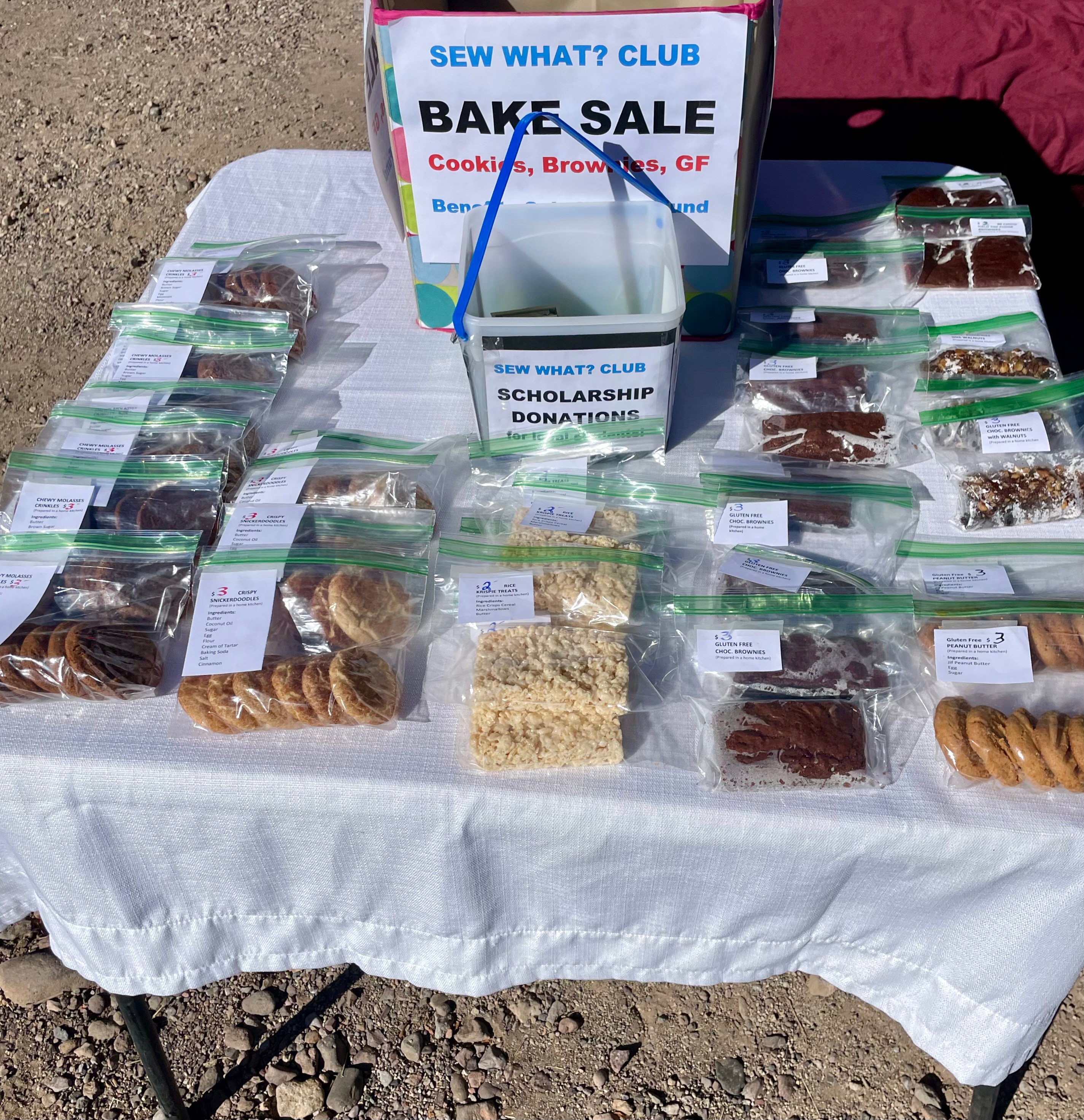 Money from Sew What? began to go to other causes. Toys and donations were given to the Douglas Salvation Army until that branch was closed. A scholarship fund was started to be given to a graduating senior of San Simon School , preferably a student from Portal. Teresa Tapp of Portal was awarded the first scholarship. The fund was later extended to Animas School, also, with preference given to a student from Rodeo.