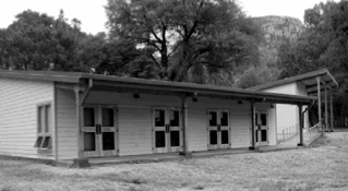The rock barn was rebuilt for bachelor quarters (currently housing unit #14).