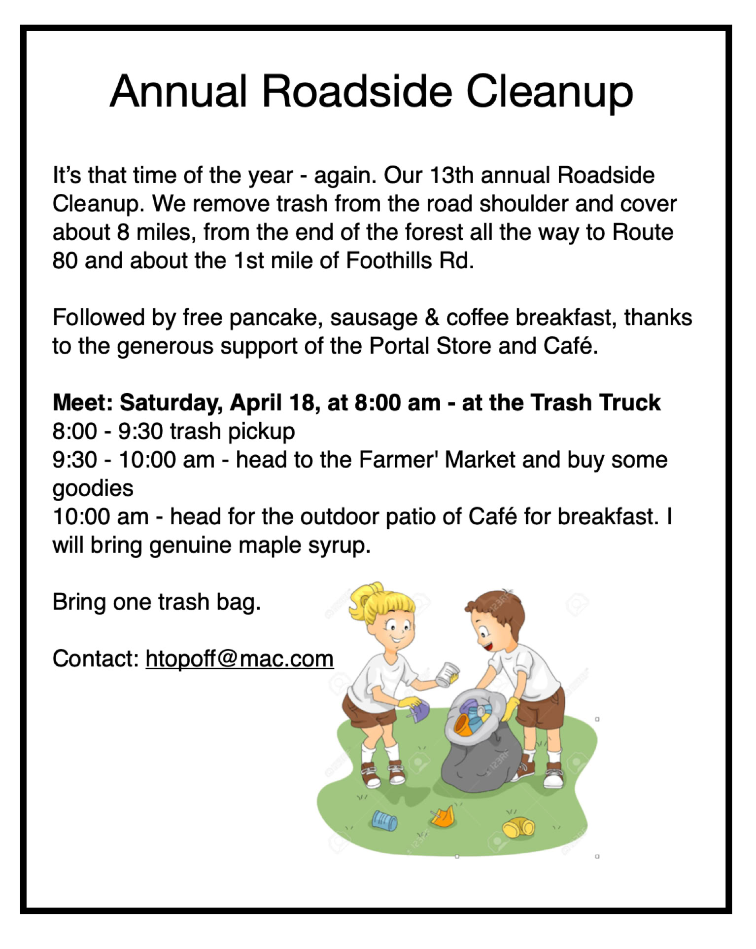 (Helps cover food, beverages, snacks, and porta-potty rental)