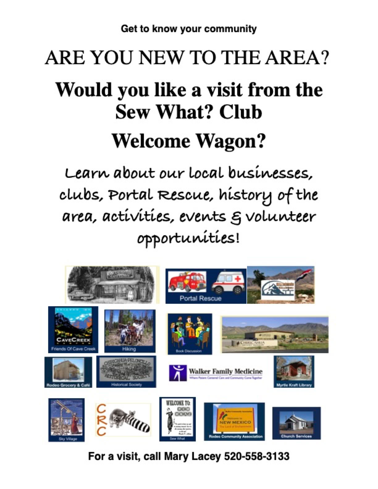 2nd Saturdays @ Portal Farmers Market with Sew What offering Welcome Packets and phone books for new residents